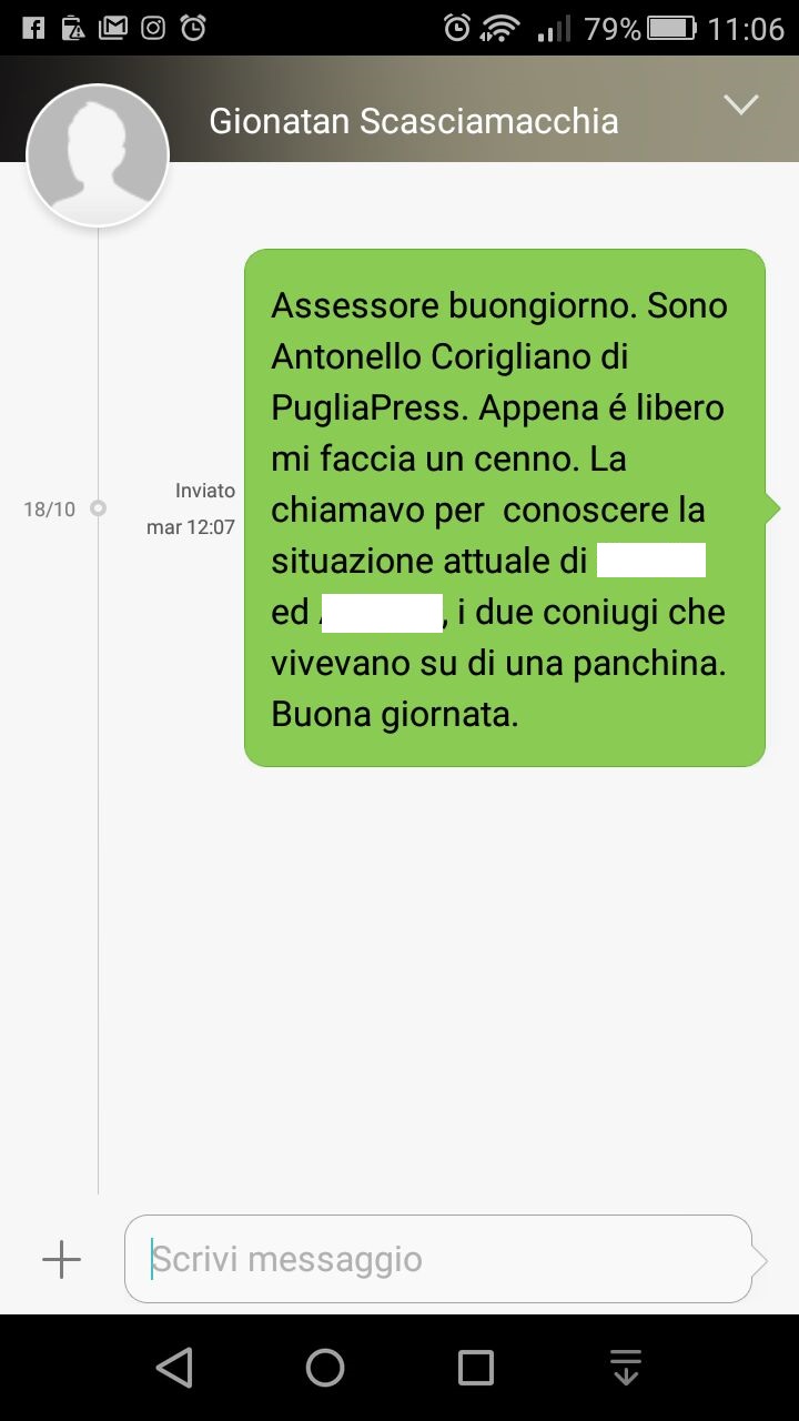Così in questi giorni abbiamo cercato di contattare direttamente l’assessore Scasciamacchia chiamandolo più volte con esito negativo. Infine, gli abbiamo inviato un SMS che è stato ignorato.