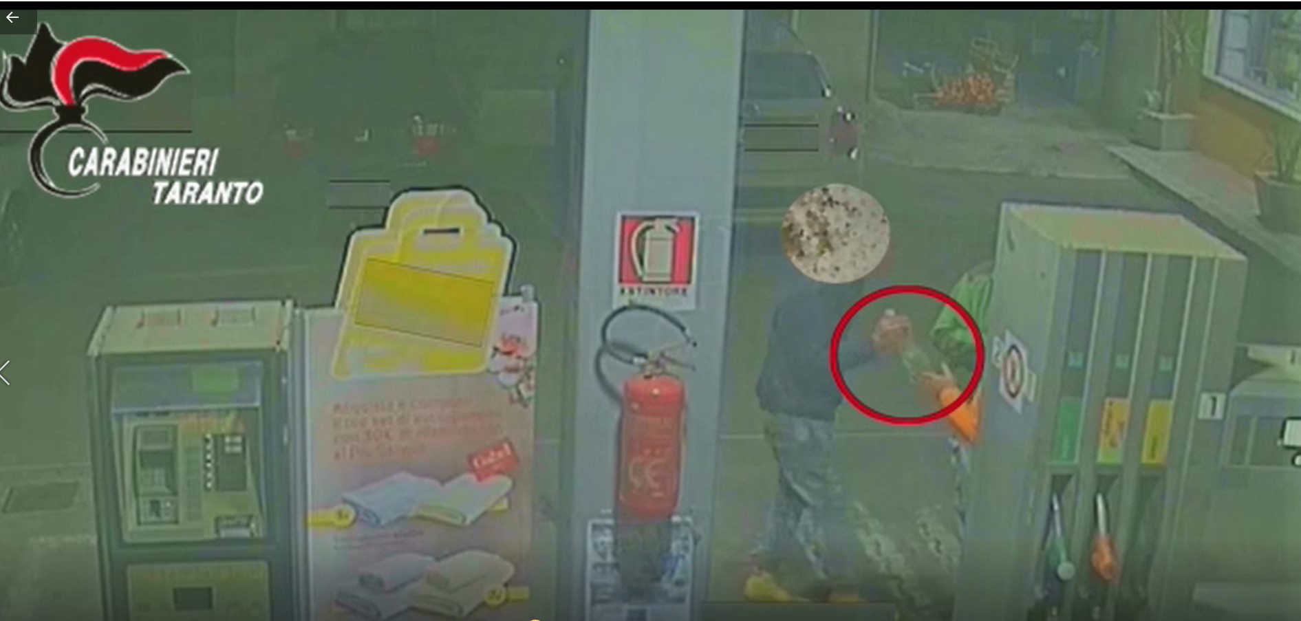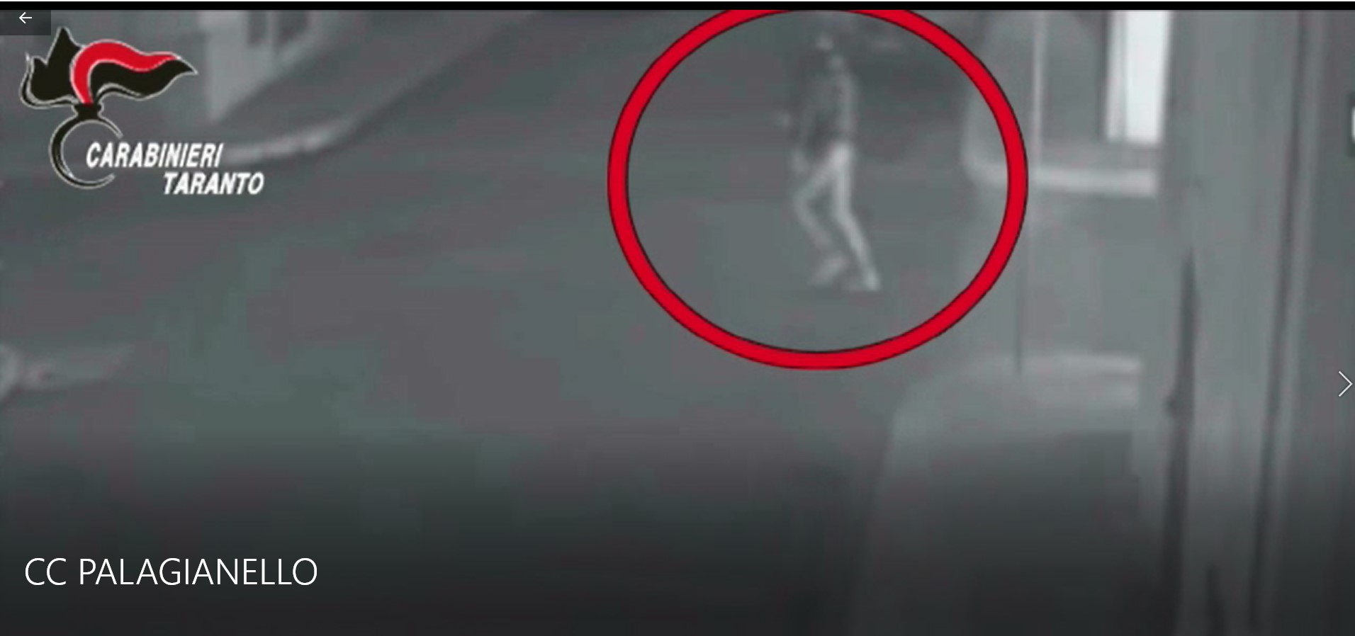 Ritenuto che il liquido infiammabile adoperato fosse benzina, anche per il forte odore avvertito dai Carabinieri durante le operazioni di spegnimento, le indagini sono proseguite con l’acquisizione e l’analisi dei filmati degli impianti di videosorveglianza delle stazioni di servizio di Palagianello e, proprio da questi accertamenti, è stato rilevato che un soggetto, riconosciuto in un giovane del posto, fisicamente e per abbigliamento compatibile con quello ripreso dalle telecamere in prossimità della caserma, alcune ore prima dell’evento, aveva riempito una bottiglia di plastica con della benzina. Da un esame più accurato è stato rilevato che l’autore del gesto criminale, per abbigliamento indossato (jeans con macchie più chiare sui polpacci e giubbotto tipo “bomber”), capigliatura (capelli rasati sulla nuca) e particolare modo di camminare, connotato da andatura claudicante, era lo stesso che era stato ripreso nel distributore di carburanti.