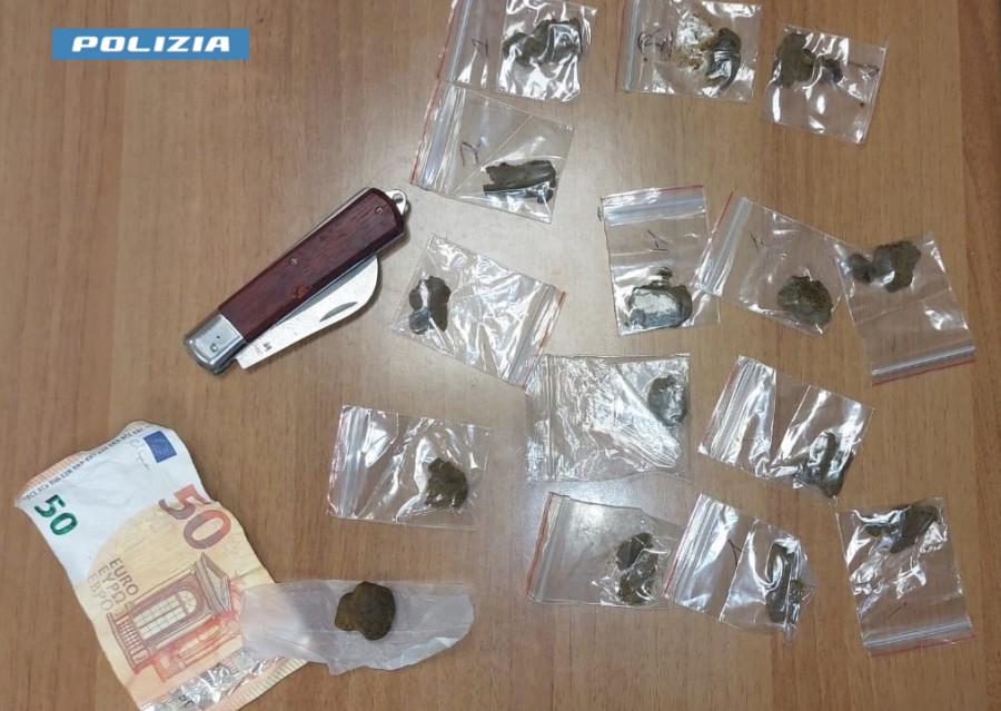 Sedicenne di Gallipoli fermato in flagranza di reato con hashish e un coltello a scatto. Durante un controllo della Polizia in piazza Carducci, il giovane è stato notato mentre cercava di nascondere qualcosa tra i suoi indumenti. Gli agenti hanno scoperto 15 involucri di hashish, per un totale di 25 grammi, e un coltello di 19 cm.