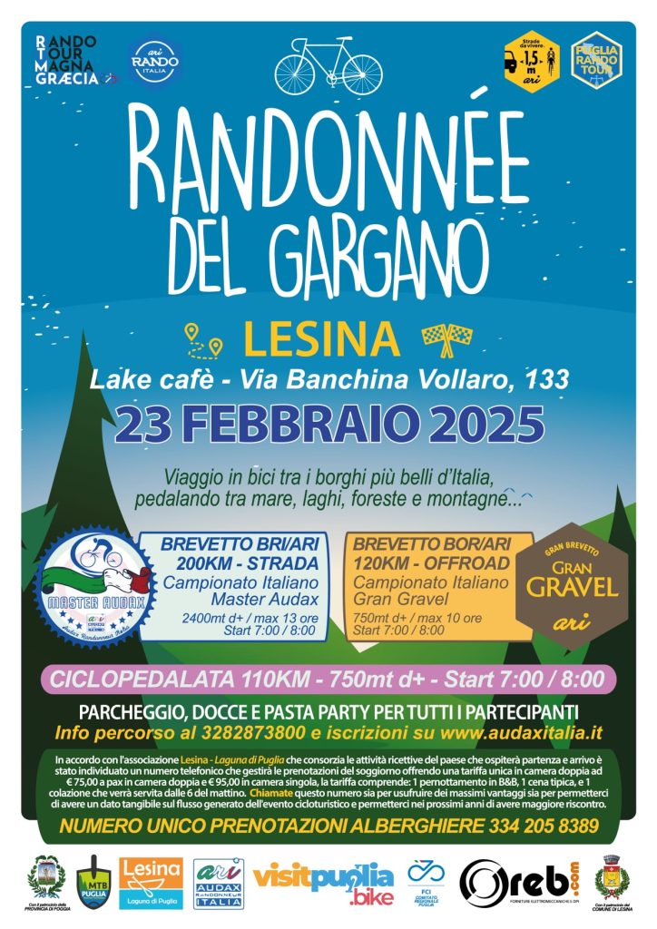 Lesina si prepara a ospitare, domani 23 febbraio, la Randonnée del Gargano, un evento che porterà oltre 150 ciclisti da tutta Italia a pedalare tra laghi, mare, borghi e montagne. Organizzata da MTB Puglia, la manifestazione prevede tre diversi percorsi con partenza e arrivo nella cittadina della Laguna.