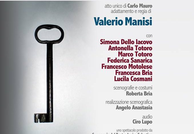 Organizzato da La Compagnia del Teatro Jonico Salentino e dall’Associazione di Promozione Sociale Macchià, “La Chiave di Casa” è un adattamento ad opera del regista Valerio Manisi del copione in atto unico di Carlo Mauro (scritto nel 1931) che fu portato in scena da Eduardo De Filippo. Lo spettacolo che si terrà il 25 maggio presso il teatro Carmine della Parrocchia Maria S.s del Monte Carmelo a Grottaglie (ingresso ore 19,00, sipario ore 19,30) vedrà la partecipazione di: Simona Dello Iacovo, Antonello Totoro, Marco Totoro, Federica Sanarica, Francesco Motolese, Francesca Bria, Lucila Cosmani, scenografia e costumi di Roberta Bria, realizzazione scenografica di Angelo Anastasia e audio di Ciro Lupo. Per informazioni dettagliate sull’evento, consultate il sito www.teatrosalentino.it, o la pagina Facebook “Compagnia Teatro Jonico Salentino”.