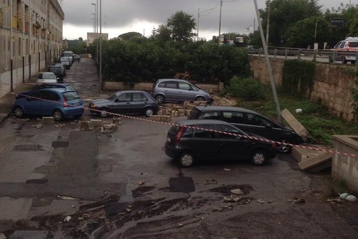 Le abitazioni in via Napoleone Bonaparte, dove peraltro vi sono alcuni edifici dello IACP, si situano su un suolo sottoposto rispetto al livello stradale. Pertanto al fine di proteggere le abitazioni dal flusso di acque, causato dal maltempo, è stato innalzato un muretto di protezione che, purtroppo, ha ceduto causando un danno alle macchine parcheggiate. L’incidente, che per fortuna non ha riportato vittime (il rischio che qualcuno, nel parcheggiare la propria auto potesse essere ferito era reale), è accaduto ieri pomeriggio intorno alle 15.00 causando anche ulteriori allagamenti di cortili e scantinati.