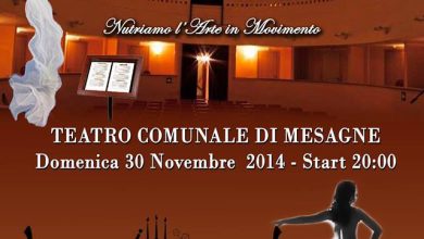 Mesagne: Domenica 30 al teatro comunale lo spettacolo di solidarietà “FEED ART IN MOTION – NUTRIAMO L’ARTE IN MOVIMENTO”