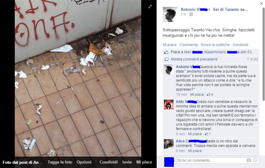 Antonio V. – questo è il nome dell’utente – ha voluto condividere con i quasi 30.000 cybernauti una fotodenuncia.