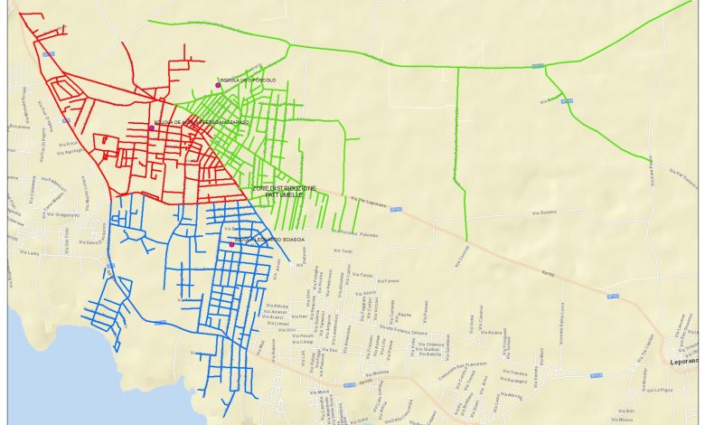 L’azienda, per ottimizzare la distribuzione dei kit, ha diviso il quartiere in tre zone (visibili nella mappa allegata): gli abitanti della zona verde avranno come riferimento la scuola “Foscolo”, quelli della zona rossa la scuola “Mazzaraso” e, infine, gli abitanti della zona blu potranno recarsi alla scuola “Sciascia”.