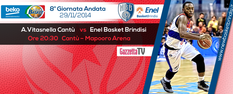 Un’Enel Brindisi finalmente al completo torna a vincere in trasferta dimostrando di essere compagine solida e con ampi margini di crescita. Con il rientro di Mays ed un più efficace inserimento nei giochi dei “nuovi” Simmons e Pullen, Brindisi ha tranquillamente condotto la gara restando in vantaggio per quasi tutto l’incontro e, soprattutto, senza mai dare l’impressione di soffrire più di tanto una delle squadre più attrezzate del campionato. Ma vediamo alla cronaca del match. I biancazzurri cominciano bene grazie ad una grande intensità difensiva. Dall’altro versante, le ottime scelte offensive concretizzate da James e Simmons, consentono di guidare 7-3 a metà gara. Dopo una flebile reazione canturina (9-7), Pullen e Denmon scrivono il 13-7 ma Simmons commette il secondo fallo e Bucchi decide di cambiare entrambi i lunghi buttando nella mischia Zerini ed il rientrante Mays. Brindisi non ne risente affatto e vola a + 8 (17-9) salvo subire il ritorno di Cantù che, con Gentile, ricuce fino al 17-13 che chiude il primo parziale. Nel secondo tempo, Brindisi non riesce a leggere correttamente la difesa avversaria e spreca davvero troppo consentendo agli avversari di conseguire il primo vantaggio del match (21-20). Bucchi corre ai ripari e mette dentro Bulleri e James. E la gara cambia: le triple di James e Harper ristabiliscono il +5 (21-26) e Sacripanti corre ai ripari chiamando time-out a 6’23” dal riposo. Il time-out scuote i lombardi e Eric Williams e Buva trovano subito i canestri che rimettono i padroni di casa a ruota dei pugliesi (25-26).
