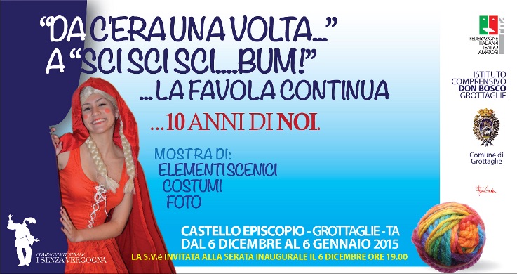 Sabato 6 dicembre si terrà presso il Castello Episcopio di Grottaglie l’inaugurazione della mostra de “I Senza Vergogna:… 10 anni di noi”, dedicata ai dieci anni di attività della compagnia teatrale dilettantesca. Riceviamo e pubblichiamo il comunicato stampa.