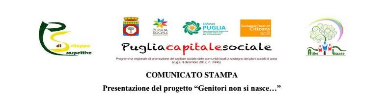 Giovedì 18 dicembre 2014 alle ore 17,30 presso l’aula consiliare del Comune di Lizzano (Ta), si terrà la presentazione del progetto “Genitori non si nasce…”, promosso in partnership da due realtà locali: l’associazione di volontariato AttivaLizzano Onlus e l’associazione di promozione sociale Prospettive di Sviluppo, entrambe attive nella provincia di Taranto, con sede a Lizzano.