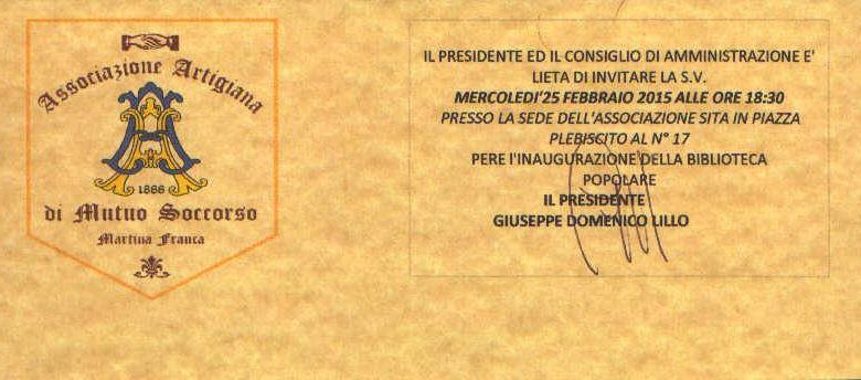 25 febbraio 2015, Martina Franca (TA), invito apertura Biblioteca Popolare