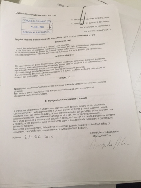 Pulsano, Di Lena: “La maggioranza mi ostacola e non vuole che io faccia il bene della comunità”