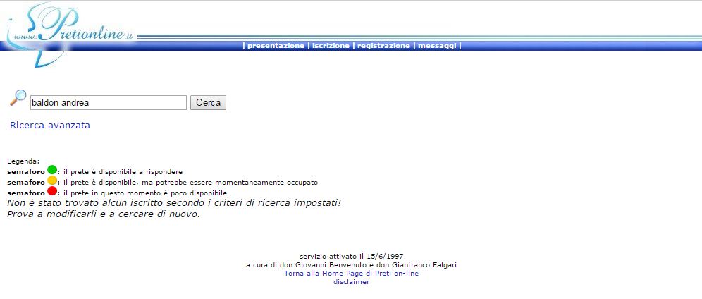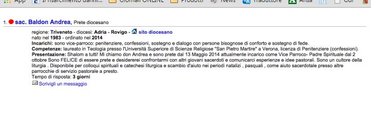 Eppure su un portale online “Pretionline.it” abbiamo trovato proprio un certo Andrea Baldon ( nato guarda caso nel 1983 come l’accusatore di Don Antonio Calvieri).