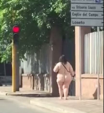 Il video catturato questa mattina da alcune ragazze sbalordite da ciò che vedevano, mostra una signora “in carne” camminare tranquillamente su corso Alcide de Gasperi, in direzione Carbonara.