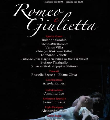 Il palco del Cinema Teatro Nuovo ospiterà nella prima parte del gala variazioni classiche, balletti di danza moderna, e nella seconda invece una suite dal repertorio classico: la storia d’amore più tragica e citata al mondo: Romeo e Giulietta. Nel ruolo di Romeo, Leonardo Velletri Primo Ballerino del Maggio Musicale di Firenze.
