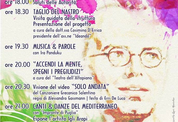 L’Amministrazione comunale di Cisternino rende noto che sabato 19 settembre, alle ore 18.00, in via Padre Massimiliano Kolbe, si terrà l’inaugurazione del “Centro Polifunzionale per immigrati Extracomunitari regolari”. Un progetto, questo, attivato sulla base di un finanziamento approvato nell’ambito dei PON “Sicurezza per lo Sviluppo Obiettivo Convergenza 2007–2013 predisposti dal Ministero dell’Interno Dipartimento della Pubblica Sicurezza. La gestione e il funzionamento del Centro è stato affidato all’Associazione di promozione sociale “Ideando” che, con la collaborazione dell’Ambito Territoriale Sociale, assicurerà le figure professionali per il segretariato sociale, il servizio sociale professionale e lo Sportello Integrazione socio-culturale. Il progetto posto in essere prevede diverse e importanti finalità. Tra queste: l’attivazione di specifiche azioni di informazione, di orientamento e di accompagnamento rivolti ai cittadini immigrati per garantire un migliore accesso ai servizi socio-sanitari, scolastici, comunali; la promozione di interventi di mediazione sociale per la gestione dei conflitti tra comunità straniere e società ospitante; favorire le occasioni di dialogo interculturale e socializzazione tra i cittadini stranieri e quelli residenti; offrire un servizio di consulenza/sostegno psicologico per le difficoltà o le patologie legate all’immigrazione e alle condizioni di povertà ed emarginazione; garantire un supporto di mediazione linguistico-culturale che rappresenti un trait-d’union con il servizio sanitario locale tale da tutelare il diritto alla prevenzione ed alla cura del soggetto migrante. Nel Centro, infine, per il mezzo di uno Sportello legale sarà garantita anche l’attività di informazione e consulenza giuridica sulla normativa italiana e in modo particolare su quella che disciplina i permessi/contratti di soggiorno, ricongiungimenti familiari, contratti di lavoro. Il programma dell’inaugurazione del Centro Polifunzionale per immigrati Extracomunitari regolari “Padre Massimiliano Kolbe” prevede, alle ore 18.00, il saluto da parte delle Autorità, cui seguirà il taglio del nastro e la visita all’interno della struttura. Prevista anche la presentazione del progetto di gestione del centro “Integrazione: Obiettivo Possibile”, a cura di Cosimina D’Errico, Presidente dell’Associazione “Ideando”. Nel corso dell’inaugurazione si terrà anche l’intervento di Ira Panduku con “Musica e Parole” e la performance “Accendi la mente spegni i pregiudizi”, a cura del Teatro dell’Altopiano. Infine ci sarà la proiezione del video “Solo Andata” del Canzoniere Grecanico Salentino, con la regia di Alessandro Gassman e i testi di Erri De Luca, e un momento di “Canti e danze del Mediterraneo” con Impronte di Puglia. Nel corso dell’iniziativa si avrà anche la possibilità di visionare l’esposizione artistica di Igli Arati.