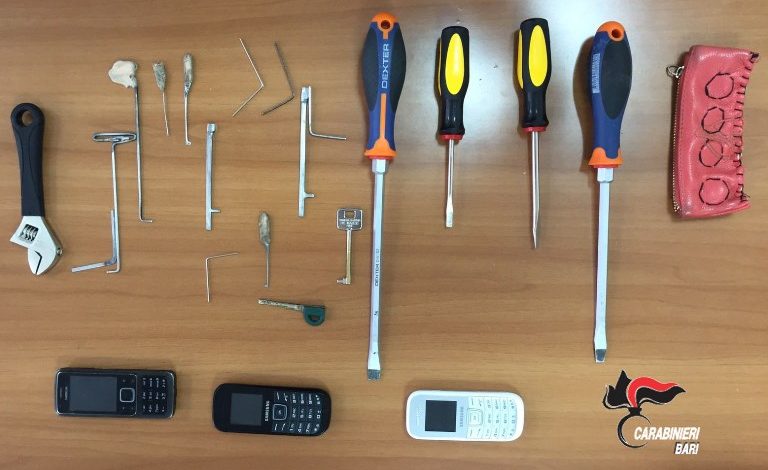 I militari della Compagnia dei Carabinieri Bari San Paolo, hanno arrestato in flagranza di reato tre cittadini stranieri (due georgiani e un ucraino) intenti, muniti di arnesi, a forzare la porta di un appartamento. L’operazione è stata possibile grazie alla telefonata al 112 di un cittadino, che aveva notato i 3 agire con fare sospetto, e che ha fornito ai carabinieri tutte le indicazioni utili per giungere sul posto. Alla vista dei militai i tre malfattori hanno tentato la fuga ma sono stati bloccati. I tre erano muniti di uno zainetto contenenti vari tipi di arnesi per lo scasso. Dopo le formalità di rito per loro è stato disposto il trasferimento in carcere.