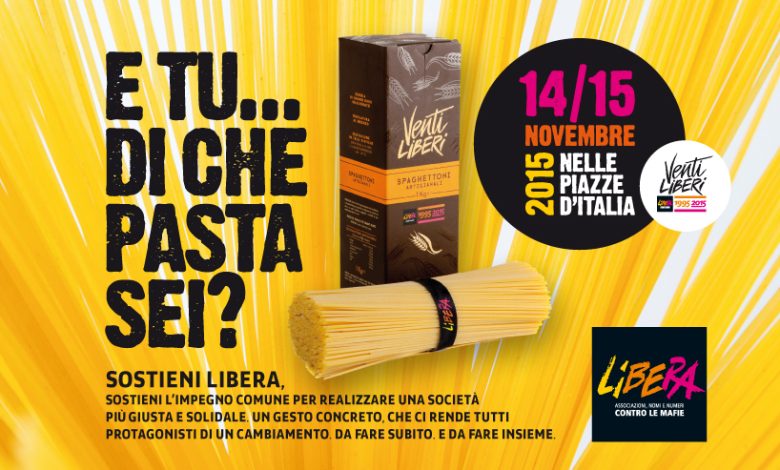 “E tu… di che pasta sei?”. Anche in Puglia, nel week-end del 14 e 15 novembre, i presidi aderiscono alla campagna promossa da Libera per celebrare il suo ventennale. Un pacco di pasta che racconta una lunga storia di impegno sociale per combattere le mafie e le tante forme di corruzione. Gli spaghettoni “Venti Liberi”, sono prodotti in esclusiva e in edizione limitata, proprio per il ventennale di Libera, grazie alla collaborazione con uno dei pastifici artigianali, eccellenza del nostro Paese, e prodotti con il grano coltivato nei terreni confiscati alle mafie e gestiti dalle cooperative di Libera Terra e dai produttori che ne condividono il progetto di riscatto da ogni forma d’illegalità. Si tratta di una pasta “libera” dal malaffare, innanzitutto. Una pasta fatta da chi vuol dare un contributo al bene comune e lavora per restituire la terra e i suoi frutti alla collettività, nel rispetto dell’ambiente e della salute dei cittadini. Una pasta che ha il sapore di libertà, resistente alle mafie e alla corruzione.