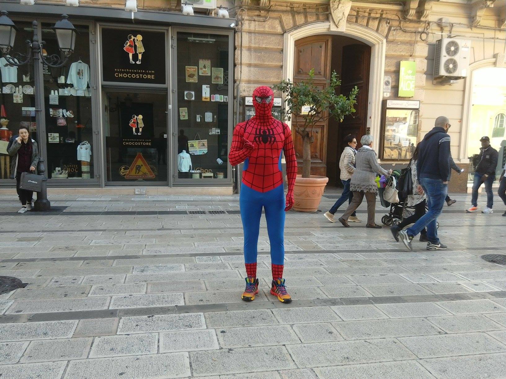 Da giorni, per le vie del centro cittadino, è in giro un individuo mascherato dall’eroe dei fumetti Spiderman. Chi sia ed il perchè abbia deciso di passare le sue giornate passeggiando per la città ancora non si sa. Ma lui è là a parlare con la gente, a scattare con loro qualche foto. Qualcuno ha anche detto che “è più presente l’Uomo Ragno tra i cittadini che il Sindaco”. Punti di vista.