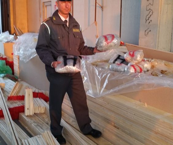 I responsabili, due cittadini albanesi di 53 e 26 anni, legati tra loro da un vincolo di parentela, sono stati trasferiti presso la Casa Circondariale di Bari per traffico internazionale di sostanze stupefacenti, mentre il carico di copertura ed il mezzo utilizzato per l’illecito trasporto sono stati sottoposti a sequestro. Venduta, la droga avrebbe fruttato circa sedici milioni di euro.