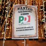 Il logo del Partito Democratico, ribattezzato “la squadra”, accompagnato dalla frase “Il partito di EXPO, delle banche e dei decreti Salva-Ilva-Ammazza-Taranto”;
