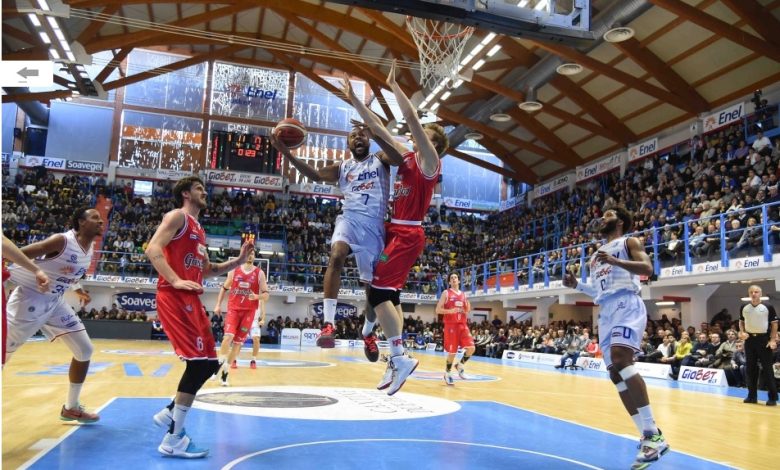 Brindisi: Banks 11, Reynolds 11, Scott, Cournooh, Harris 9, Cardillo, Milosevic, Fiusco, Gagic 11, Zerini 4, Marzaioli, Kadji 7. All. Bucchi