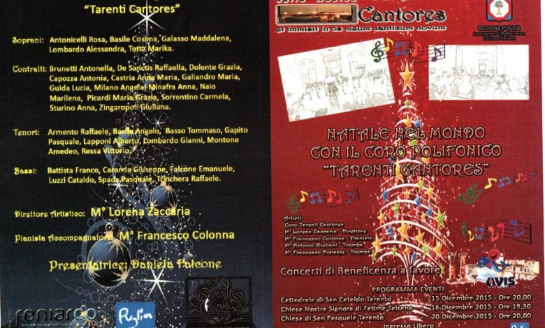 Ai concerti di Natale tenuto dal coro polifonico “Tarenti Cantores” che si terranno nelle date: