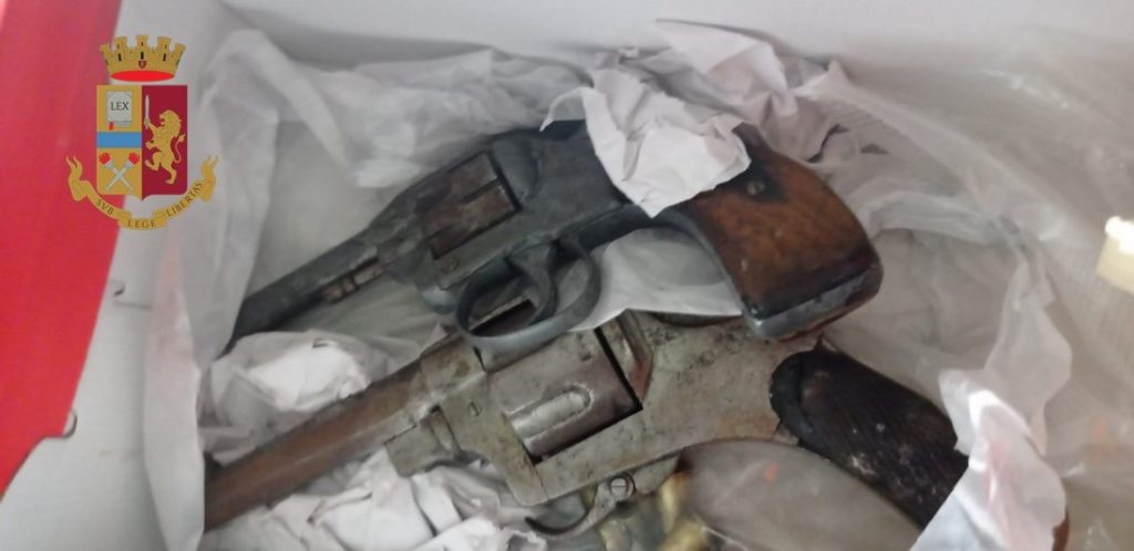 I poliziotti della Squadra Mobile, unitamente a personale del Commissariato di Manduria, hanno proceduto alla perquisizione dell’abitazione predetto, all’interno della quale hanno rinvenuto due pistole a tamburo revolver, rispettivamente una “Bodeo 1889” avente calibro 10,35 ed una priva di identificazione avente calibro 22, cinque cartucce calibro 10,35 e tre cartucce calibro 22 ed infine due sciabole ed una “Katana” detenute senza autorizzazione.