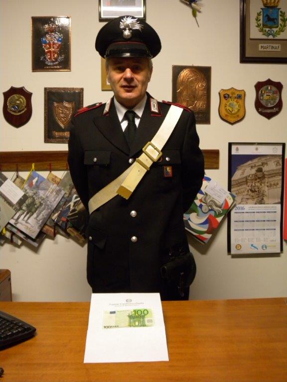 Alcuni giorni addietro si presentava, presso la Stazione Carabinieri di Martina Franca, la dipendente di una sala slot della città del festival riferendo che il 14 gennaio scorso un soggetto si era recato presso il citato esercizio chiedendo che gli venisse cambiata una banconota da 100 euro in altre di più piccolo taglio.