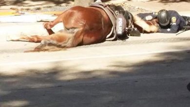 “Questo è l’amore: un poliziotto si è sdraiato accanto al suo cavallo morente, mentre esalava l’ultimo respiro”