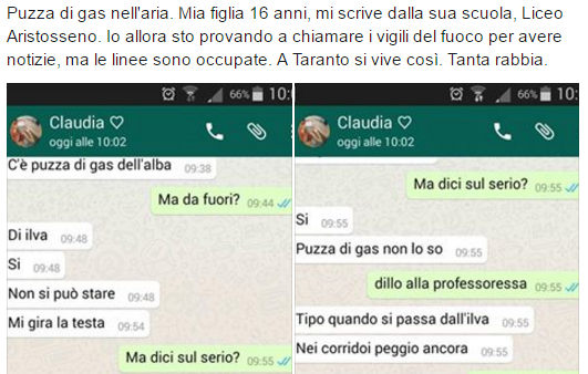 Puzza di gas nell’aria. Mia figlia 16 anni, mi scrive dalla sua scuola, Liceo Aristosseno. Io allora sto provando a…