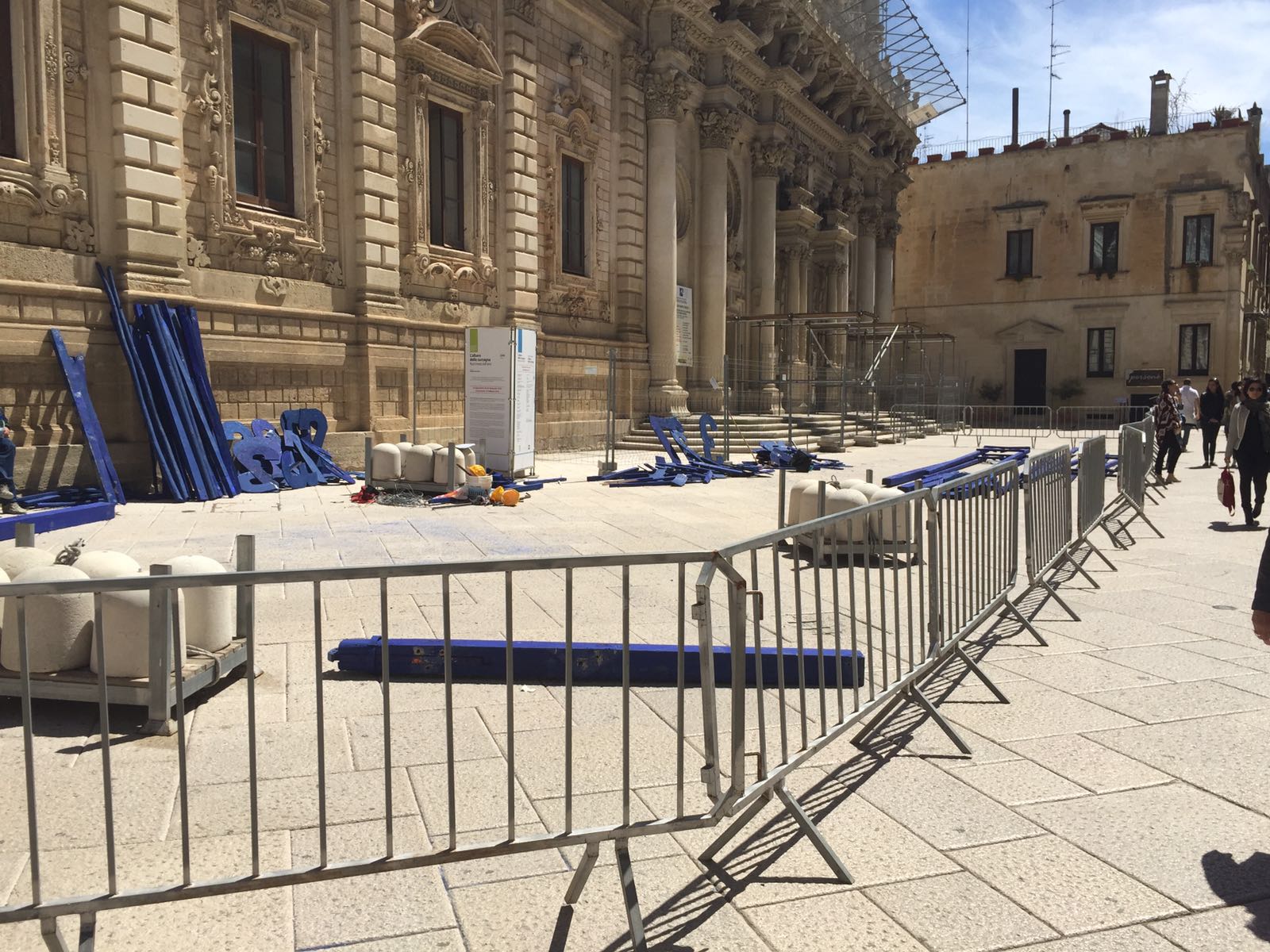 Dopo la nostra segnalazione, anticipata dallo Studioso dell’architettura Fabio Antonio Grasso, sul precario equilibrio dell’Albero della Cuccagna istallato davanti alla Basilica di Santa Croce, l’opera ideata da Mimmo Paladino sembra pronta per essere rimossa.