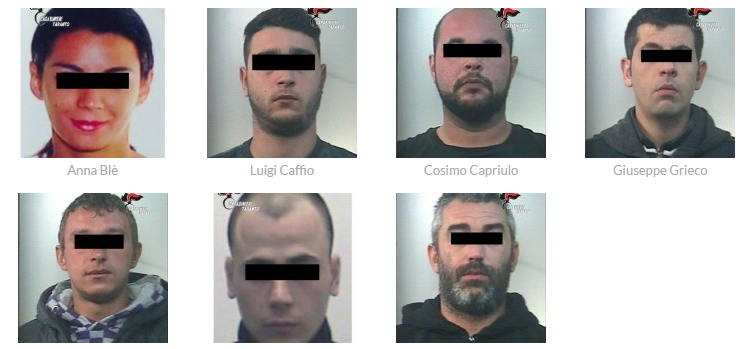All’alba del 26 ottobre 2015 Carabinieri dell’Aliquota Operativa del N.O.R. della Compagnia di Taranto hanno dato esecuzione a un’ordinanza di custodia cautelare, emessa dal G.I.P. presso il Tribunale di Taranto dott.ssa Vilma Gilli, nei confronti di otto soggetti.