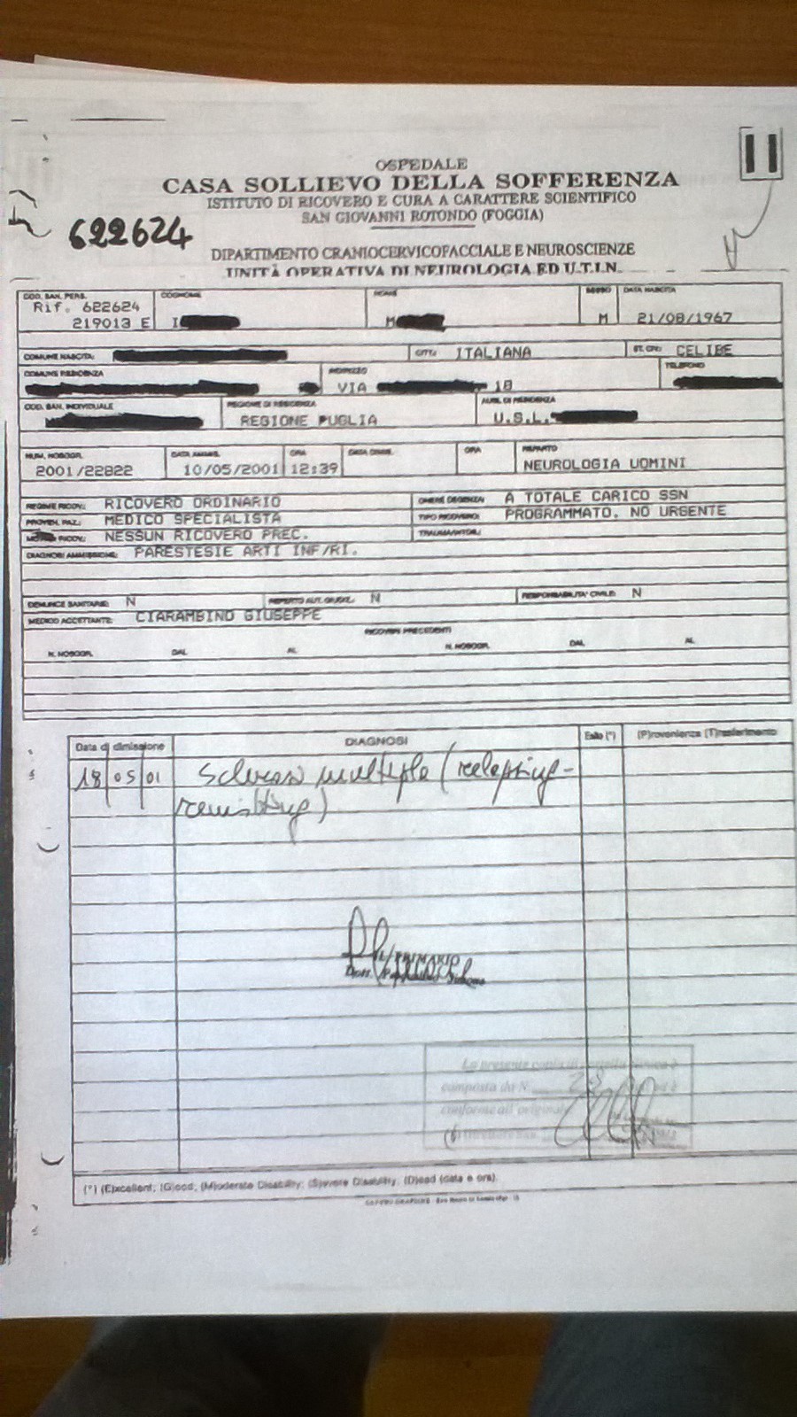Segnatamente al Sig. Marco, nel 2001, è stata diagnosticata per la prima volta una grave malattia neurologica, purtroppo oggi sempre più diffusa : la sclerosi multipla.