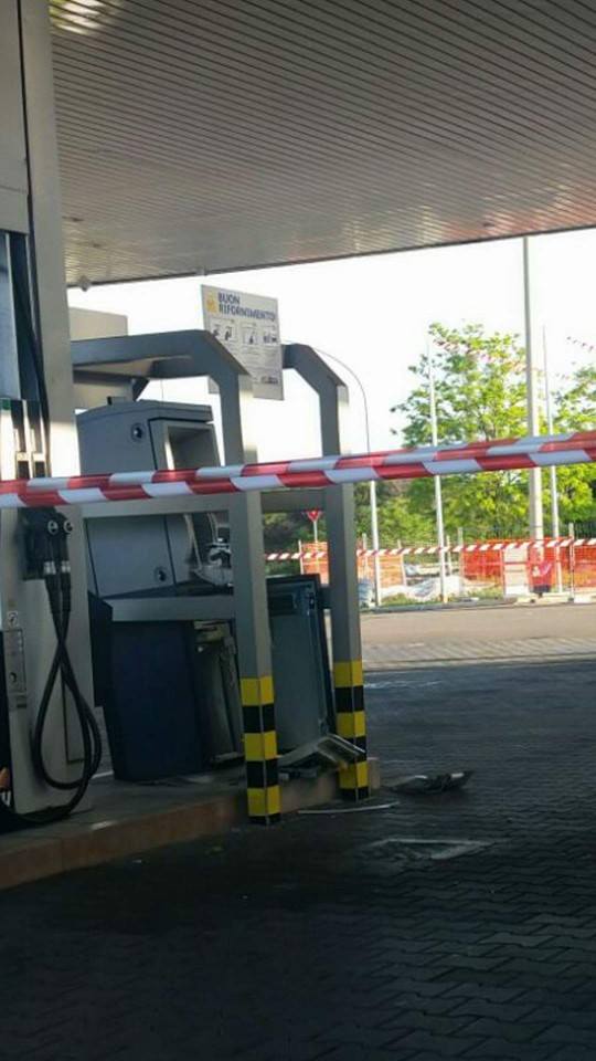 Tutto è stato fatto in pochissimi minuti. Hanno legato una fune al dispositivo automatico che legge le banconote per l’erogazione del carburante e con un trattore lo hanno letteralmente sradicato.