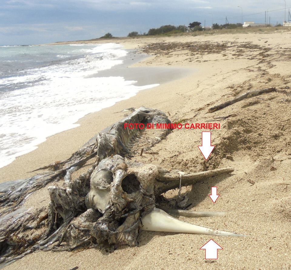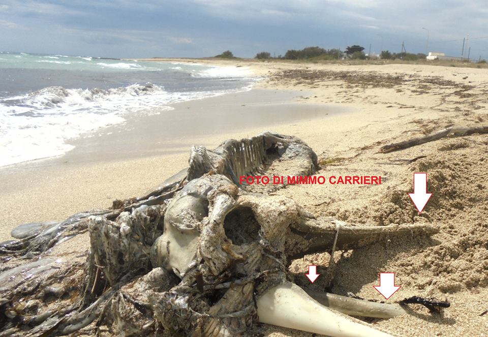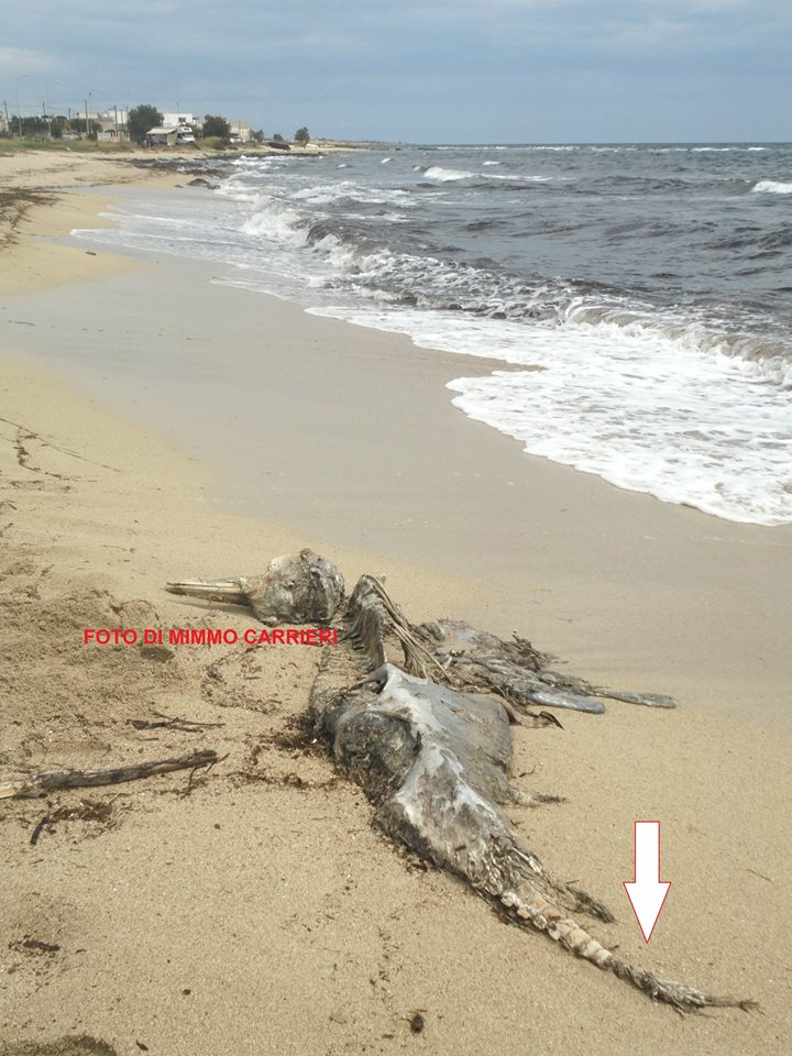 Del ritrovamento ho provveduto ad allertare il Comando di Polizia Municipale del Comune di Lizzano competente per giurisdizione che a sua volta provvederà a chiamare una ditta specializzata per la rimozione e lo smaltimento della carcassa in discarica autorizzata. Certamente cosa migliore sarebbe se si consultasse un esperto per esaminare la carcassa e stabilire la specie di appartenenza di questa “creatura venuta dal mare”.
