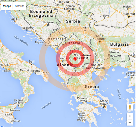 Intorno alle 18 e 33 e alle 18 e 41 due intense scosse di terremoto sono state registrate sulla penisola balcanica fra Albania e Macedonia. La notizia è stata riportata da Inmeteo.net.