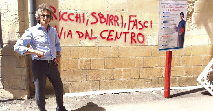 Dopo la vicenda di degrado e abbandono al centro sociale Terra Rossa, tornano le scritte di vernice rossa nel centro storico che recitano: “ricchi, sbirri e fasci via dal centro”. Una scritta sul muro del Santuario di San Filippo Smaldone, un bene preziosissimo per il patrimonio artistico e culturale della città salentina.