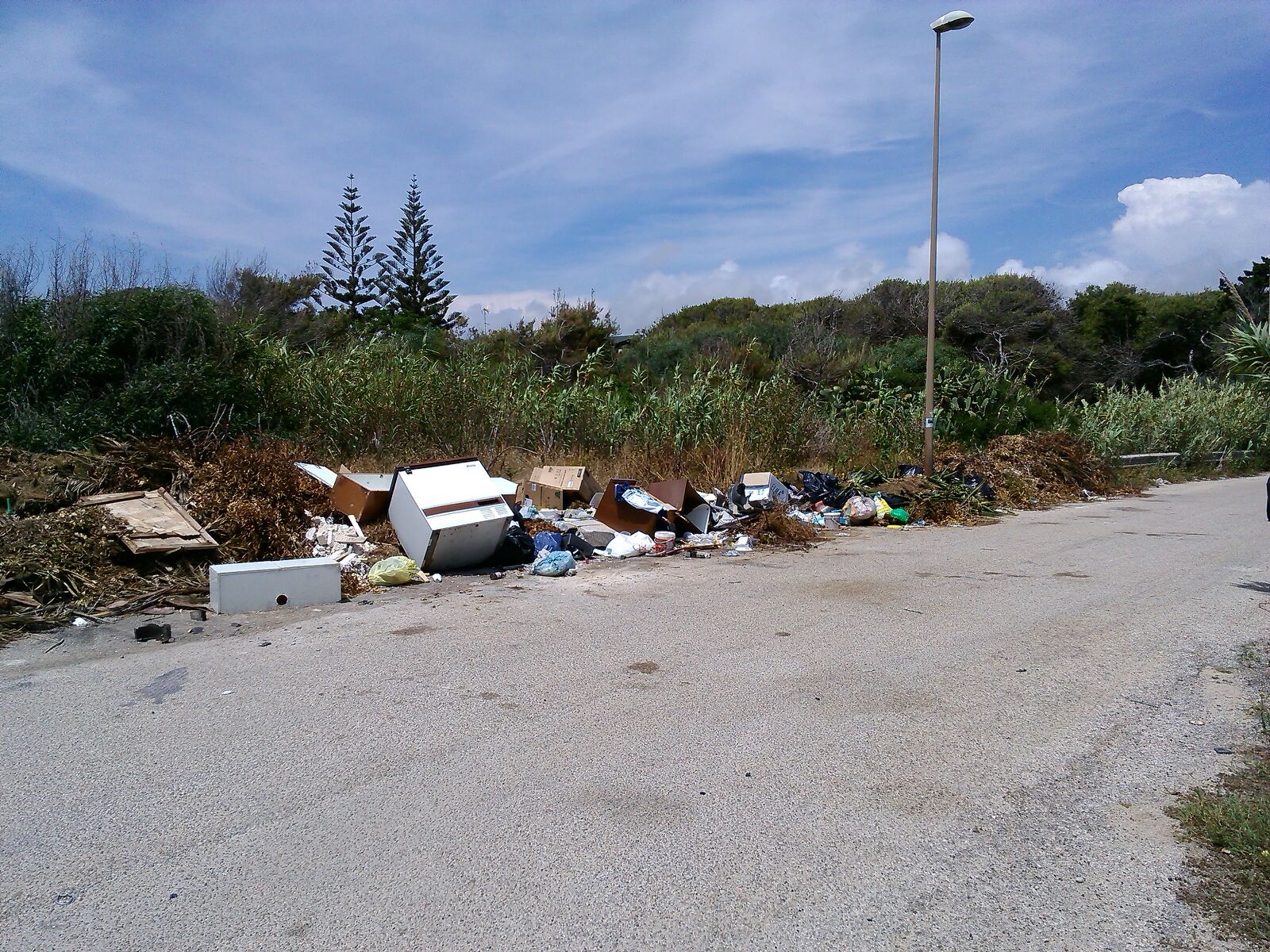 Al Comandante la Stazione dei Carabinieri faccio presente che, a parte il negativo impatto paesaggistico derivante dal degrado ambientale ed igienico sanitario a cui è esposto il tratto della litoranea ricadente nelle le località balneari in oggetto, l’intera area del prosieguo di via Ariosto, di proprietà comunale destinata parcheggio, in violazione a quanto sancito dal Dlgs.3 aprile 2006, n.152 (Norme in Materia Ambientale) è adibita a “discarica abusiva” a cielo aperto di “resti di tronchi di palme colpite dal punteruolo rosso”, “pneumatici”, “inerti di costruzioni”, “materiale plastico”, e materiale bituminoso rinveniente da “fresatura scarificazione e demolizione del manto stradale” (le cui polveri pericolose per la salute trasportate dal vento invadono le abitazioni circostanti), tutti “materiali speciali” facente parte dell’elenco dei Codici CER(Codice Europeo Rifiuti) che vanno obbligatoriamente smaltiti in discariche autorizzate. Quanto sopra Esposto, per gli eventuali provvedimenti di propria competenza.