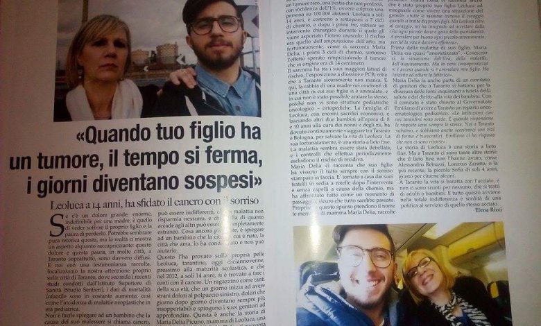 Questo l’ha provato sulla propria pelle Leoluca, tarantino, oggi diciannovenne, prossimo alla maturità scolastica, e che nel 2012, a soli 14 anni, si è trovato a fare i conti con il cancro. Un ragazzino come tanti della sua età, che un giorno inizia ad avere strani dolori al polpaccio sinistro, dolori che giorno dopo giorno diventano sempre più insopportabili e spingono i suoi genitori ad approfondire. Questa è anche la storia di Maria Delia Picuno, mamma di Leoluca, una mamma coraggio. Maria Delia ci racconta che dopo una prima settimana di controlli presso l’ospedale di Taranto, i medici stessi consigliarono loro di rivolgersi fuori regione, poiché i sospetti portavano a pensare a qualcosa di serio. Così Maria Delia, suo marito e Leoluca si recano a Bologna, dove la diagnosi non tarda ad arrivare: Leoluca ha un sarcoma delle parti molli. Si tratta di un tumore raro, una bestia che non perdona, con incidenza dell’1%, ovvero colpisce una persona su 100.000 abitanti. Leoluca a soli 14 anni, è costretto a sottoporsi a 7 cicli di chemio, e dopo i primi tre, subisce un intervento chirurgico durante il quale gli viene asportato l’intero muscolo. Il rischio era quello dell’amputazione dell’arto, ma fortunatamente, come ci racconta Maria Delia, i primi 3 cicli di chemio, sortirono l’effetto sperato rimpicciolendo il tumore che in origine era di 14 centimetri.