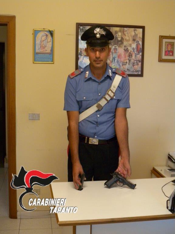 Ieri, i Carabinieri della Stazione Taranto Salinella hanno rinvenuto e sequestrato una pistola cal.9 perfettamente funzionante e priva di matricola.