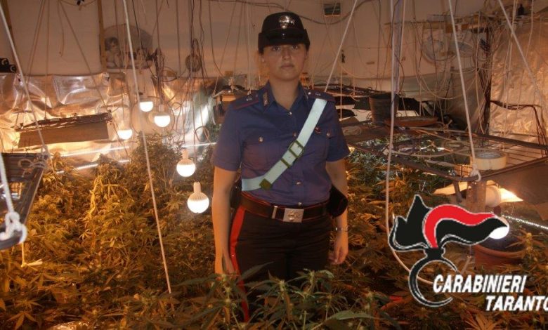 Taranto – All’esterno abitazione, dentro una mega serra di marijuana. Maxi sequestro dei Carabinieri.