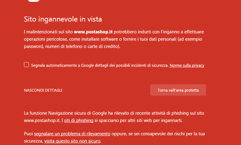 Cliccando sul link si attiva l’allert del browser che ci troviamo di fronte ad un sito ingannevole. In questo caso la minaccia è conosciuta ma ricordare sempre di fare massima attenzione a tutti i pseudo “regali “della rete.