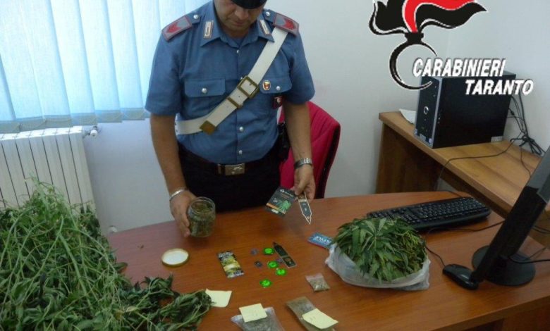 I Carabinieri della Stazione di Mottola hanno denunciato in stato di libertà un giovane 30enne del luogo, per coltivazione e detenzione di sostanze stupefacenti. I militari, nel corso di specifici servizi antidroga, appreso dell’esistenza di un’attività di spaccio compiuta da un ragazzo con piccoli precedenti alle spalle, hanno deciso di eseguire una perquisizione nell’abitazione del predetto, che consentiva di rinvenire alcune dosi di marijuana per un peso complessivo di 7 gr. Gli operanti, quindi, decidevano di estendere le operazioni anche ad un’abitazione rurale, poco distante dal centro abitato, nella disponibilità del soggetto. Durante l’attività, i militari accertavano che una stanza della casa, dotata di lampade UVB con termostato e di un sistema di ventilazione e irrigazione automatico, era stata adibita a serra per la coltivazione della cannabis. All’interno, infatti, i Carabinieri rinvenivano cinque piante di cannabis, dei vasi in vetro pieni di numerosi semi sempre di cannabis e circa 600 gr. di foglie di marijuana già essiccata e pronta per lo spaccio. L’intero locale e l’attrezzatura venivano sottoposti a sequestro, mentre il giovane, al termine delle formalità di rito, veniva denunciato in stato di libertà alla Procura della Repubblica di Taranto per coltivazione e detenzione di sostanze stupefacenti. La droga sequestrata sarà inviata al Laboratorio Analisi Sostanze Stupefacente del Comando Provinciale CC di Taranto, per le previste analisi sul principio attivo