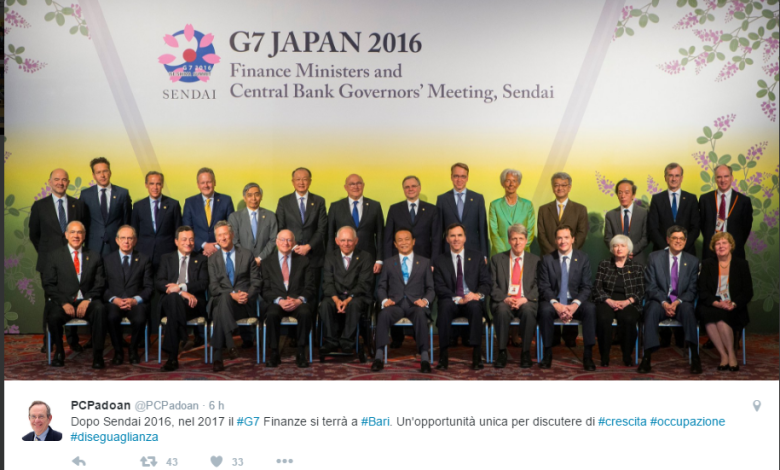Bari – Padoan: “Bari ospiterà il G7”. In Puglia le grandi potenze economiche