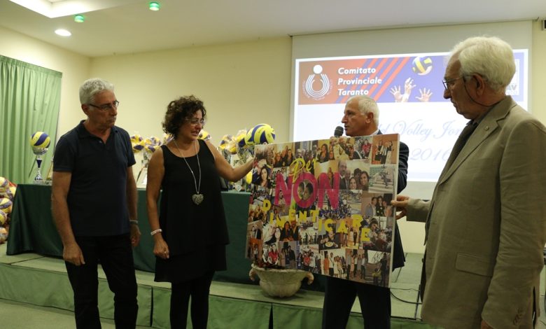 Tanti premi, sorrisi, ragazzi, volti noti della federazione, del mondo dello sport, ospiti di eccezione e tanta solidarietà e commozione. Questo il riassunto della Festa del Volley Jonico, organizzata dal Comitato provinciale della FIPAV, che si è tenuta il 1 ottobre u.s. nella sala convegni del Park Hotel di Martina Franca. Questa volta però lo scenario è stato totalmente diverso, sicuramente più intenso e probabilmente indimenticabile per molti. La FIPAV Taranto ha voluto ricordare Federica De Luca ed il suo piccolo Andrea (uccisi il 7 giugno scorso da Luigi Alfarano (rispettivamente marito e padre, che poi si è tolto la vita) mostrando un video in cui la vedeva protagonista nella sue vesti di arbitro e durante il suo percorso di vita nel Comitato. È stata inoltre presentata la raccolta di denaro nata spontaneamente il giorno della loro scomparsa, da alcuni amici arbitri, tesserati e quanti la conoscevano, che ha poi coinvolto tutta Italia, raggiungendo la somma di euro 5.675,00 che è stata devoluta all’Associazione la Festa dei Limoni-Onlus di Marco Braico, ospite indiscusso d’eccezione della serata. Marco Braico di Torino è un arbitro di pallavolo di seria A che ha sconfitto la leucemia e, durante la serata, ha spiegato come è nata la sua associazione “La Festa dei Limoni” (omonimo del suo libro parzialmente autobiografico) che compra e dona beni a ospedali di tutta Italia destinati al benessere dei pazienti ricoverati. Federica era un arbitro di pallavolo e Commissario degli Ufficiali di Gara del Comitato jonico. Ha sempre prestato la suo opera nel comitato con dedizione, passione e tanto carattere. In occasioni come queste – ricorda il presidente FIPAV TARANTO Stefano De Luca – è stata sempre disponibile senza risparmiarsi, portando gioia, sorrisi e creatività. Abbiamo voluto, attraverso questo gesto, far sì che il suo ricordo resti scalfito nel cuore di tanti, anche di chi non la conosceva. L’idea di raccogliere del denaro e di devolverlo all’associazione di Marco Braico – che ricordiamo ha già lo scorso anno donato otto frigoriferi al reparto di Oncologia dell’Ospedale Moscati di Taranto, in occasione della presentazione del suo libro, sempre per iniziativa del CP FIPAV di Taranto – è nata in un momento di disperazione ed incredulità. E’ un gesto di speranza e di unione. Abbiamo voluto ricordare Federica ed Andrea come meritano: con un gesto concreto e tangibile che viene dal cuore. Vorremmo che con questi soldi Marco Braico, con la sua associazione, comprasse dei beni da donare ad un reparto di pediatria. Enzo De Luca e Rita Lanzon i genitori di Federica e nonni di Andrea, omaggiati di un quadro con collage di foto ritraenti l’adorata figlia alle prese con la vita pallavolistica, erano presenti ed, inevitabilmente commossi e straziati dal dolore, hanno avuto la forza di ringraziare tutti per la pregevole iniziativa; sempre in prima linea ad onorare la memoria di Federica e Andrea, così come ha evidenziato Laura Rochira referente sitting volley del CP Fipav TARANTO e amica di Federica, durante la presentazione della donazione, leggendo una lettera scritta per l’occasione con cui ricorda Federica, spiega come è nata l’iniziativa, ma ancor di più utilizza toni fermi e forti verso i presenti in sala.