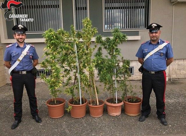 Nei decorsi giorni, i Carabinieri della Stazione di Lizzano (Ta), nel corso di uno specifico servizio perlustrativo nelle campagne dell’agro di quel centro, finalizzato a prevenire i furti e danneggiamenti nelle aree rurali della giurisdizione, nel transitare lungo la SP 124, che da Lizzano conduce a Campomarino di Maruggio, notavano tra le sterpaglie di un terreno agricolo incolto, 5 piante di canapa indiana di altezza variabile tra 1,5 e 2,0 metri. Le stesse erano ben occultate sotto alcuni alberi di pino, all’interno di un terreno in evidente stato di abbandono, non recintato, collocate a poche decine di metri l’una dall’altra,