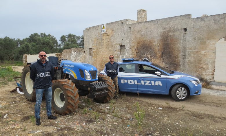 L’attività di indagine, lunga e laboriosa, traeva origine dal ritrovamento di un trattore da parte della pattuglia della volante di questo Ufficio non lontano dal centro commerciale Auchan. Risaliti al proprietario lo si contattava telefonicamente e lo si informava del ritrovamento. Con sommo stupore, lo stesso era ignaro del furto perchè abitante in luogo diverso dalla masseria da dove si era consumato il reato. Recatosi sul posto appurava che ad essere stato asportato non era stato solo quel trattore ma anche un altro analogo mezzo di marca Fiat, modello New Holland, due motoseghe, un taglia erba ed altri attrezzi da lavoro nonchè vi era stato il tentativo di furto di un camion che presentava il lunotto di accensione forzato.