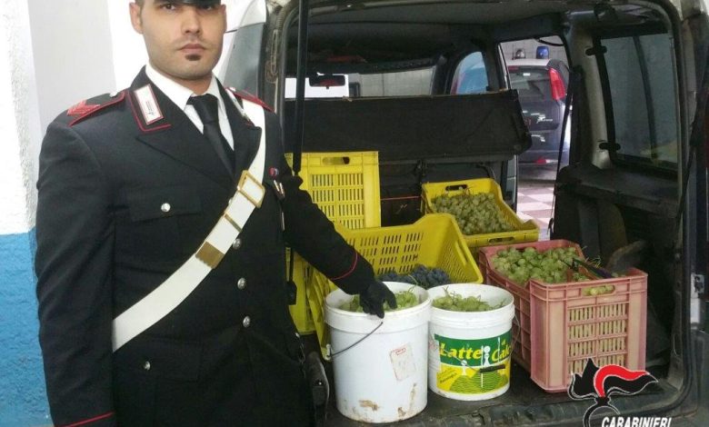 Dalle verifiche effettuate i Carabinieri hanno appurato che i due avevano appena reciso 80 kg. di uva da tavola da un vigneto e, dopo averla accuratamente riposta in cassette, si stavano accingendo a collocarla nel bagagliaio dell’autovettura.