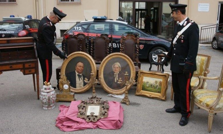 Gli accertamenti effettuati sui pezzi d’antiquariato, eseguiti dai militari della Compagnia ionica unitamente ai colleghi del Nucleo Carabinieri Tutela Patrimonio Culturale di Bari, hanno consentito di appurare che i pezzi risultano tutti rubati nel 2008 da Palazzo Artenisio – Carducci nonché inseriti nella banca dati nazionale degli oggetti d’arte rubati tenuta dal Comando Carabinieri Tutela Patrimonio Culturale di Roma.