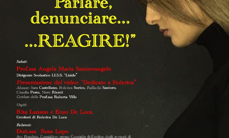Presentazione video “Dedicato a Federica”, in memoria di Federica DE Luca e conferenza “Parlare, denunciare, reagire “ – 25 novembre, ore 10 IISS LISIDE DI Taranto