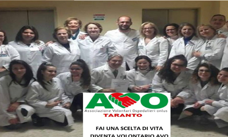 A nome dell’Associazione Volontari Ospedalieri di Taranto ringrazio la cortese generosità di tutti quelli che si sono spesi e si stanno spendendo per la riuscita di questa iniziativa ed in particolare il nostro amico volontario Biagio Spinelli che pur vivendo un particolare momento, non ha mai fatto mancare neppure per un attimo il suo straordinario apporto umano all’AVO e ai nostri malati. L’AVO è orgogliosa di poter vantare fra i suoi volontari e amici uomini e donne come lui.